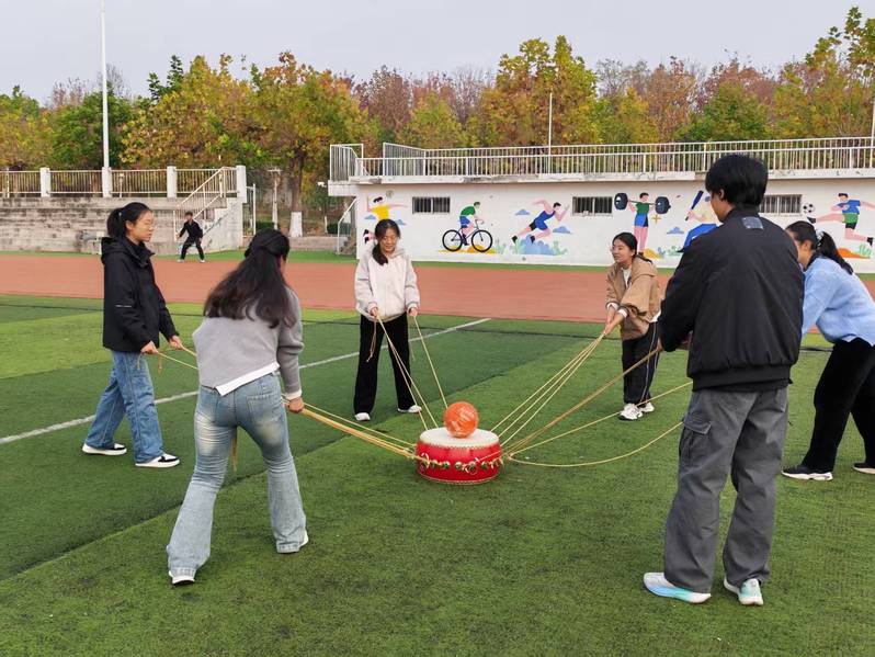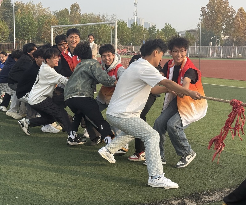 活动现场氛围热烈高涨,“同心鼓”“拔河”“骑龙”等集体项目中,各参赛队伍配合默契、步调一致,生动诠释了“人心齐,泰山移”的团结力量。“大脚怪”“指压板跳绳”等趣味环节里,参赛选手斗志昂扬、奋勇争先,在欢声笑语中展现出坚韧不拔的体育风貌。整场活动在热烈欢快的氛围中圆满落幕,充分彰显了学生干部们积极向上、勇于挑战的青春风采。