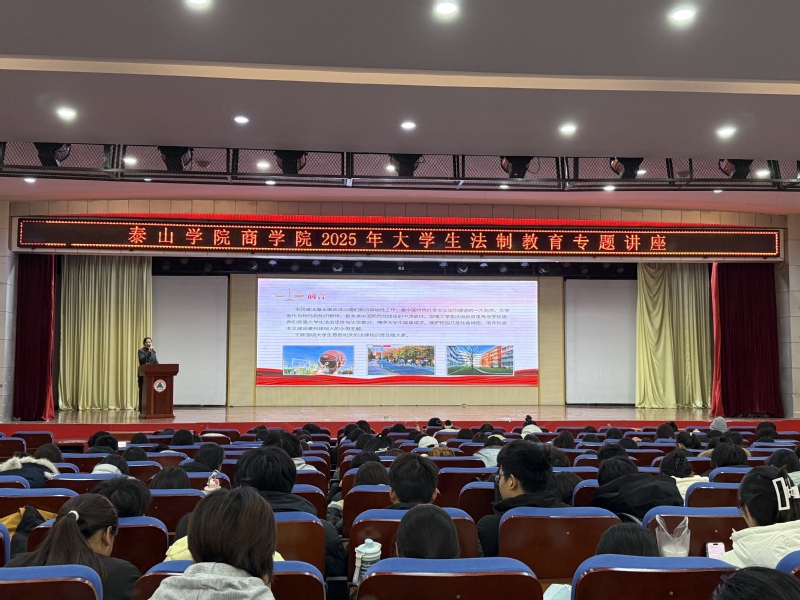 12月8日下午,商学院在南校区新生一部,面向全体新生开展法治教育专题讲座,特邀山东同怀律师事务所副主任、泰安市岱岳区人民检察院听证员吴国欣律师主讲。